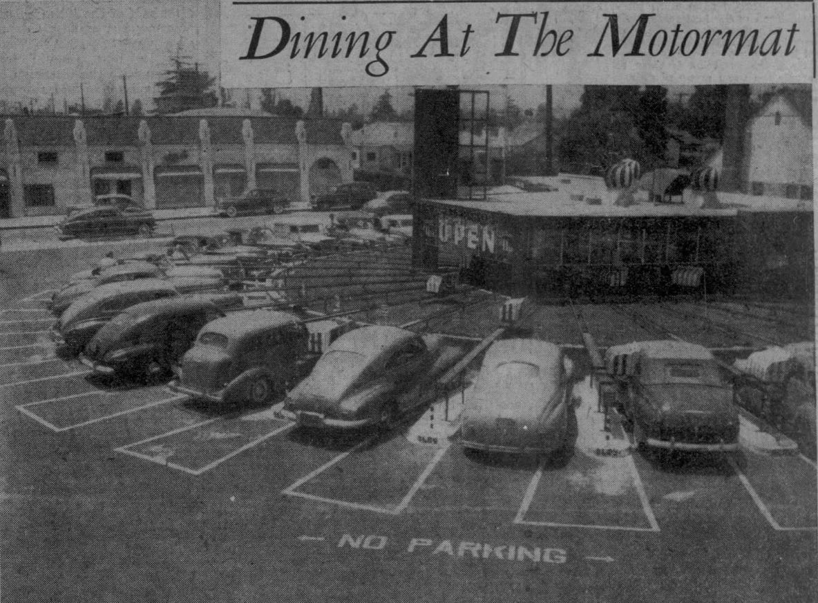 The McDonalds’ Speedy Service System was the most successful of the many attempts by entrepreneurs to streamline restaurant operations during that era, but as Michael Karl Witzel documents in his book The American Drive-In, there were plenty of other less-successful efforts. The Motormat, for instance.